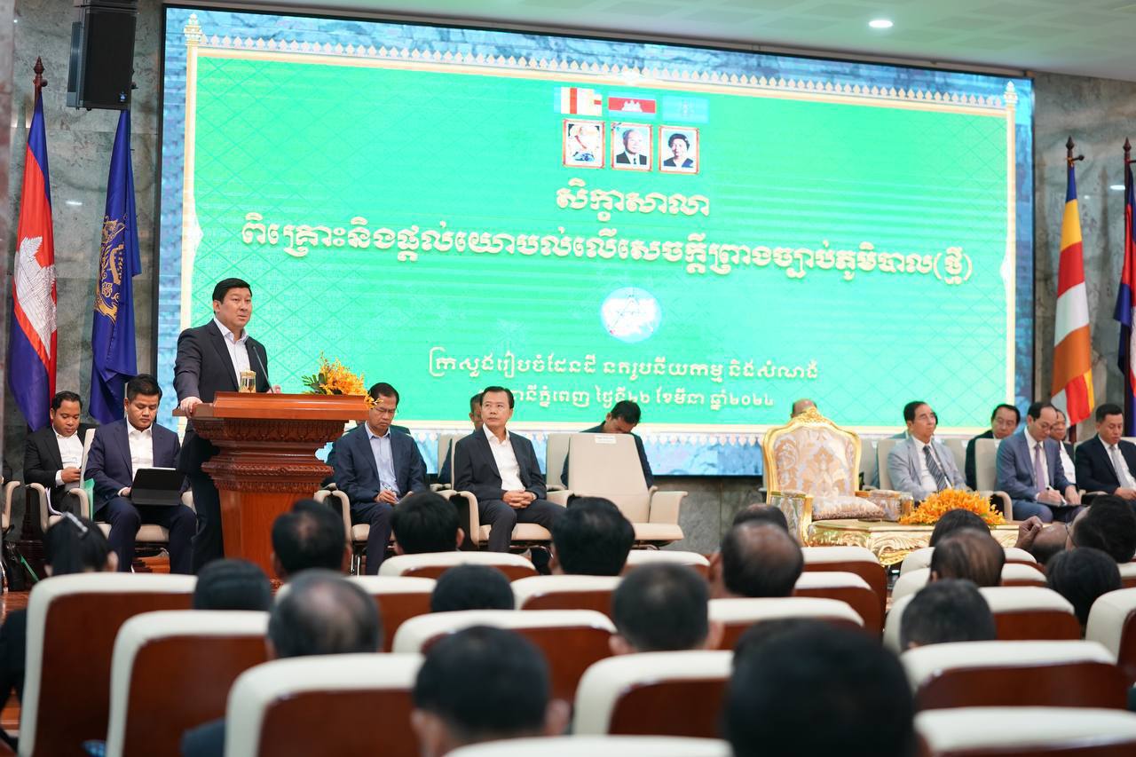 នាព្រឹកថ្ងៃទី២៦ ខែមីនា ឆ្នាំ២០២៤ ថ្នាក់ដឹកនាំក្រសួងរៀបចំដែនដី នគរូបនីយកម្ម និងសំណង់ បន្តពិគ្រោះ ផ្ដល់យោបល់ និងប្រមូលធាតុចូលពីគ្រប់ភាគីពាក់ព័ន្ធ លើសេចក្តីព្រាងច្បាប់ភូមិបាល(ថ្មី) ដើម្បីឱ្យសេចក្តីព្រាងច្បាប់នេះមានលក្ខណៈគ្រប់ជ្រុងជ្រោយ ងាយស្រួលអនុវត្ត ជាពិសេសឆ្លើយតបបានចំពោះតម្រូវការសេដ្ឋកិច្ចសង្គមកម្ពុជា។